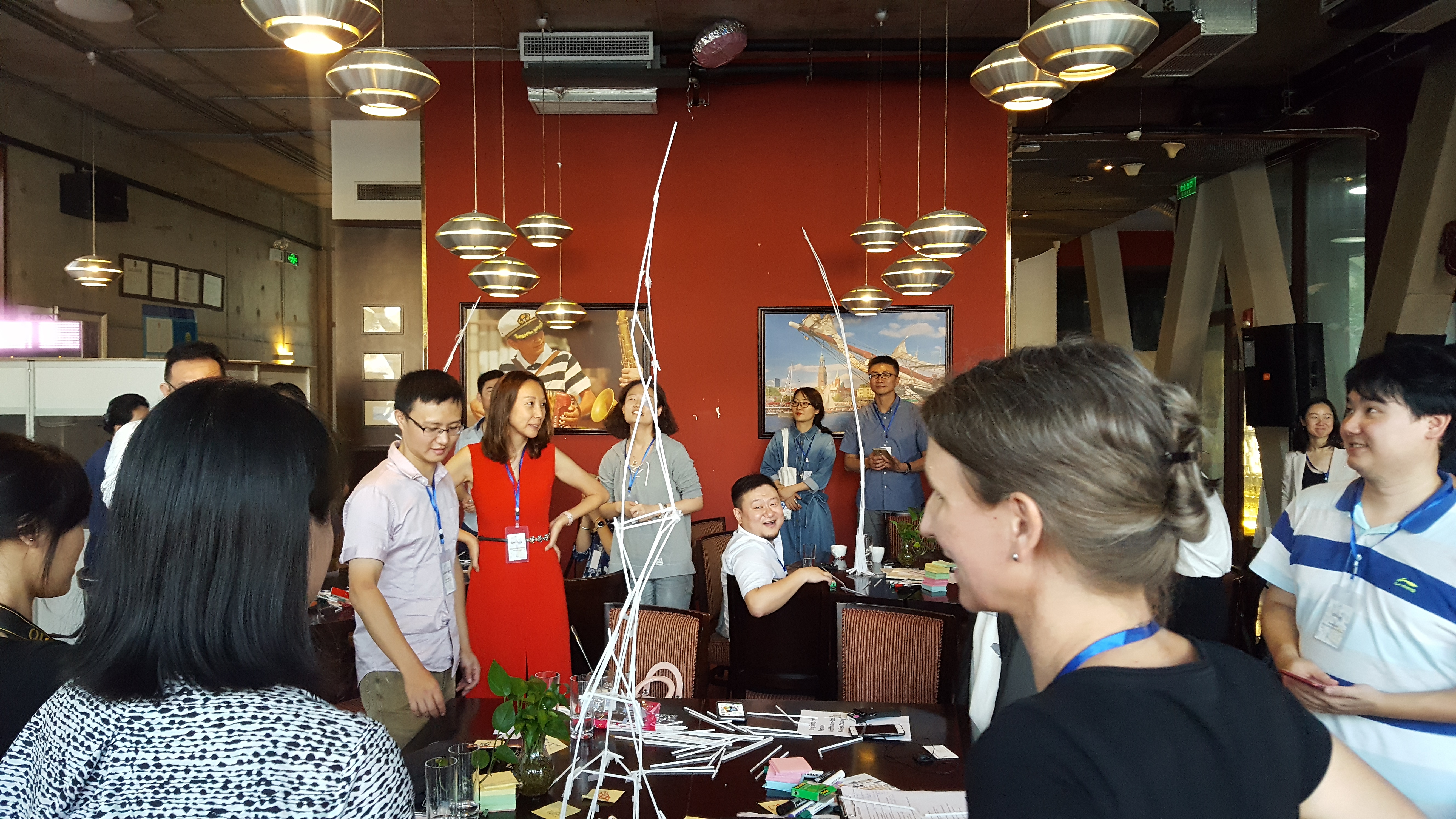 The GENIUS Project has kicked off in China, hosted by ILEK Stuttgart, CCSBC, Constellations, and energydesign. A workshop was held on 26th and 27th September at the Hamburg House at Shanghai’s Expo Site, where around 50 participants discussed about sustainable planning and design for schools in China. Architects, engineers and designers, as well as teachers, principals and scientists found together in small groups to explore innovative planning games to build better and more sustainable school environments for its users and the surrounding cities. Examples from Germany and China were discussed, including the EuroCampus Yangpu, a high-quality foreign school in Shanghai designed by gmp with LEED Platinum and GBL 3-star certification, conducted by energydesign.